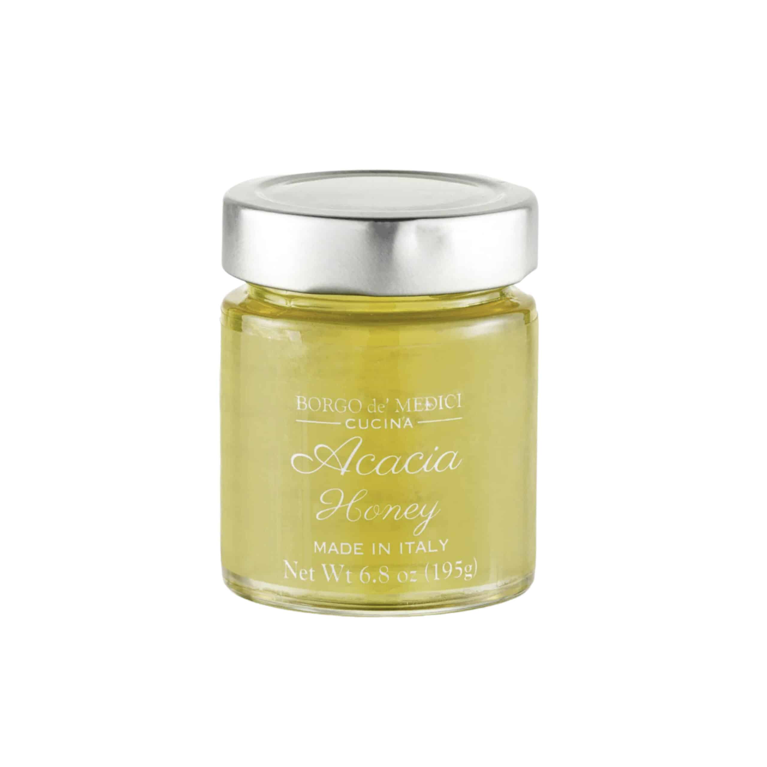 Borgo de’ Medici Acacia Honey is a fine expression of Tuscany’s natural richness. Harvested in spring from acacia woods during the brief ten-day flowering period, this golden honey is gathered by bees tirelessly visiting nectar-rich blossoms from morning until evening.