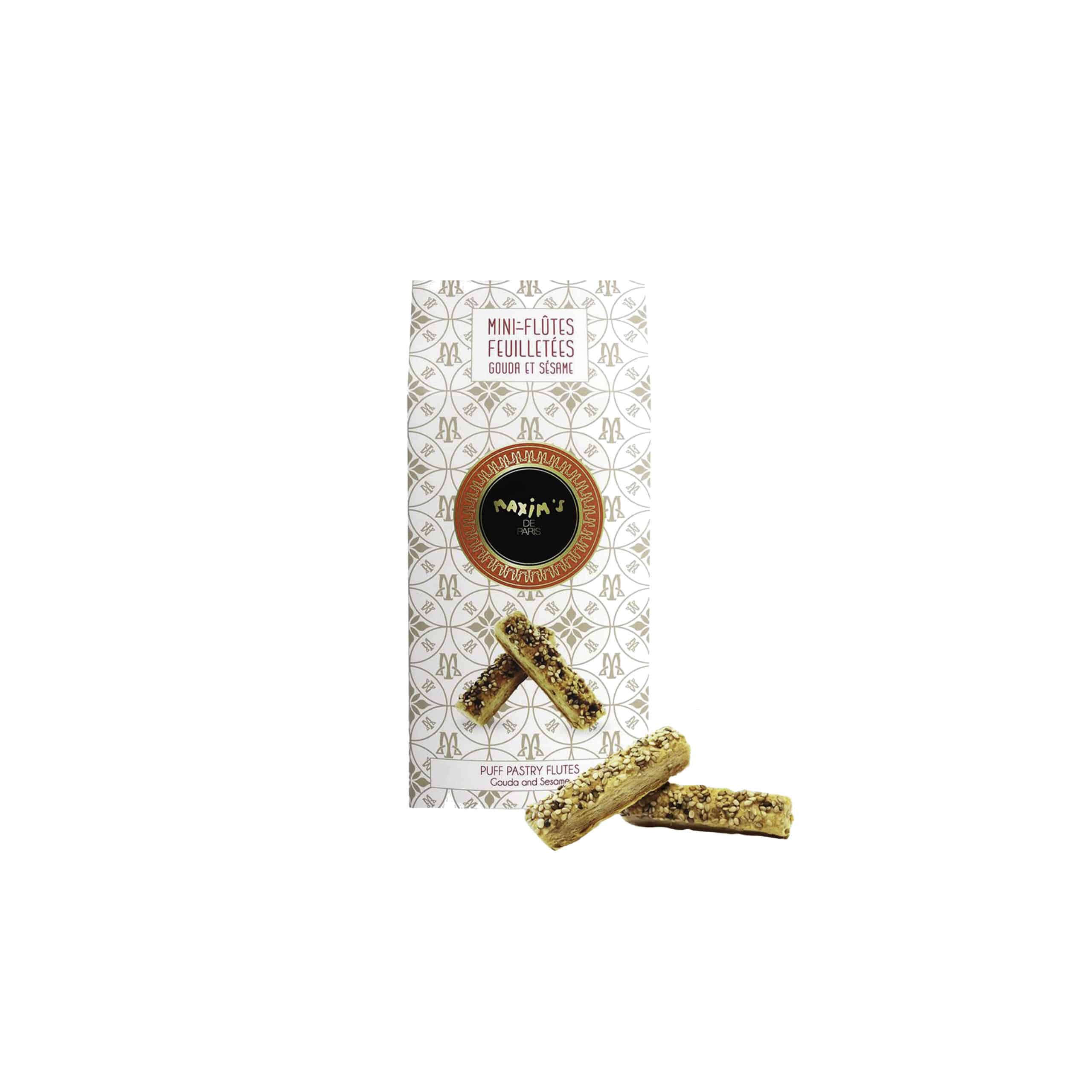 Crisp mini pastries with Gouda cheese and sesame seeds. A light, flavourful bite that suits aperitifs, sharing boards, and cheese platters.